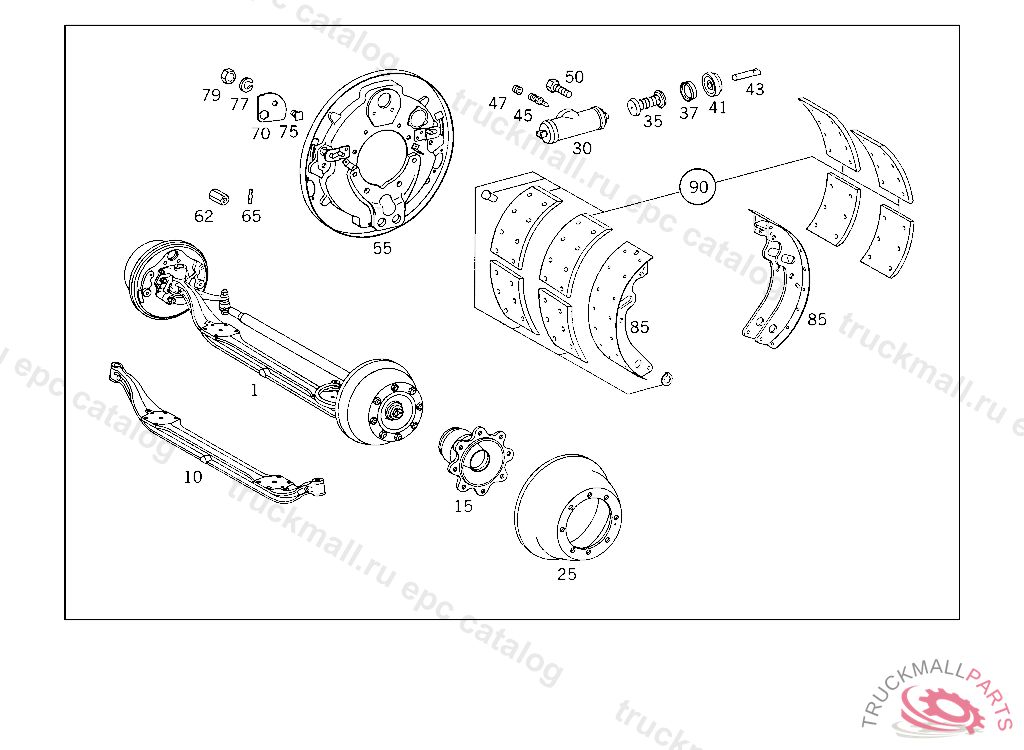BRAKE LINING (PARTS KIT) (ASBESTOS-FREE BRAKE LINING) 15.30 MM,8X 341 423 42 10), UP TO CHASSIS 910369 ALSO INSTALLED ON 500001-501414,FROM CHASSIS 910370 AND 501415-599999 SEE SPARE PARTS LIST 744.3