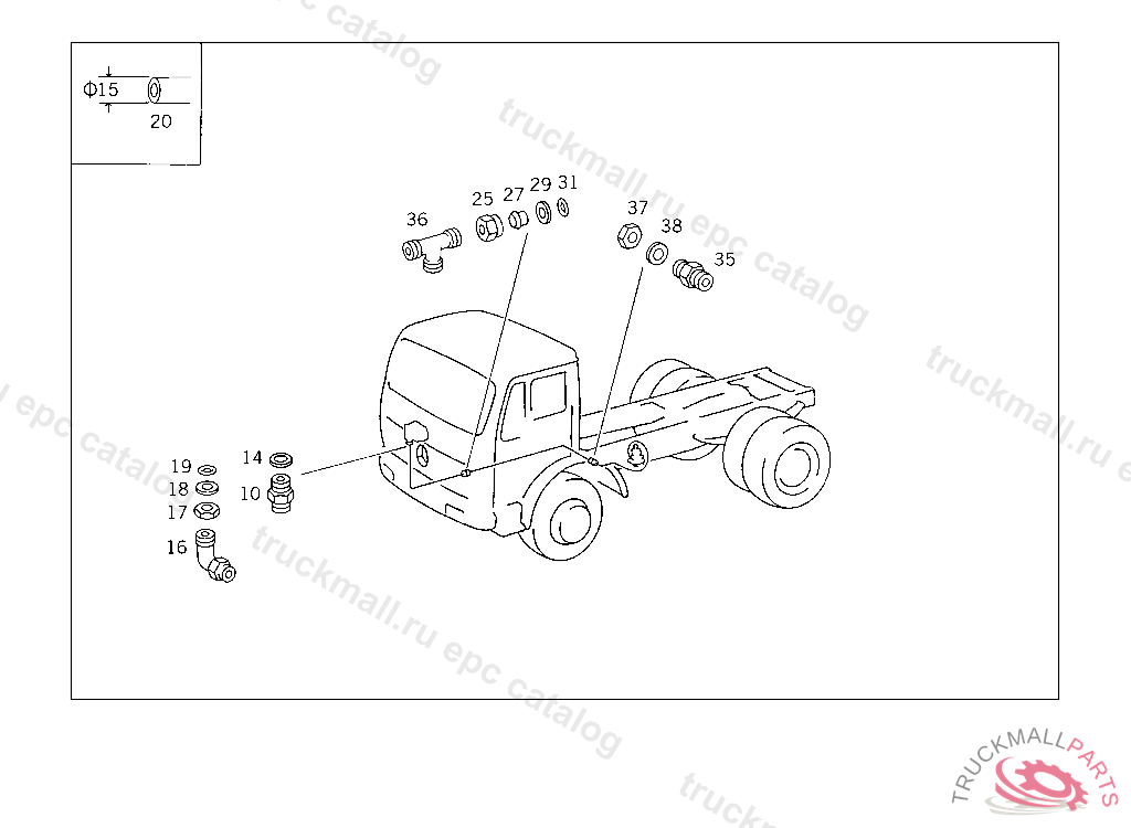 ELBOW FITTING FOUR-CIRCUIT PROTECTIVE VALVE, CONNECTION: "1", 620.415 UP TO CHASSIS 5 014668 620.416 UP TO CHASSIS 5 000515 620.417 UP TO CHASSIS 4 972023
