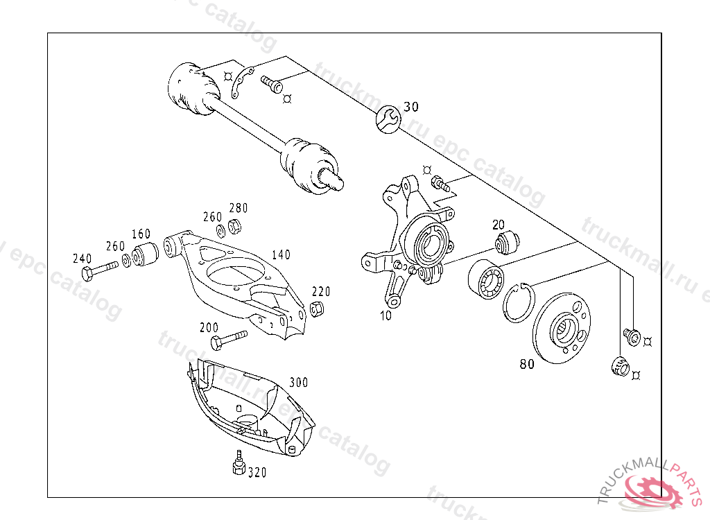 WHEEL CARRIER. WHEEL BEARING WITH LOWER CONTROL ARM JOINT AND WHEEL MOUNTING,LEFT, A 597177 X 007199