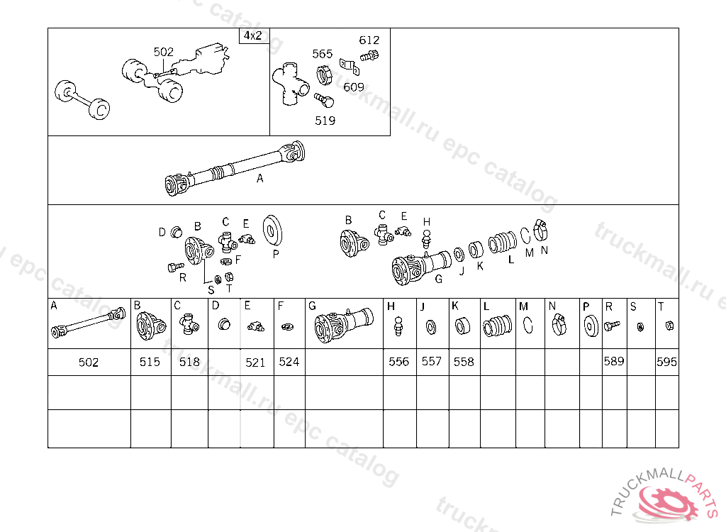 PROPELLER SHAFT FROM TRANSMISSION TO REAR AXLE 670 MM,D 124753