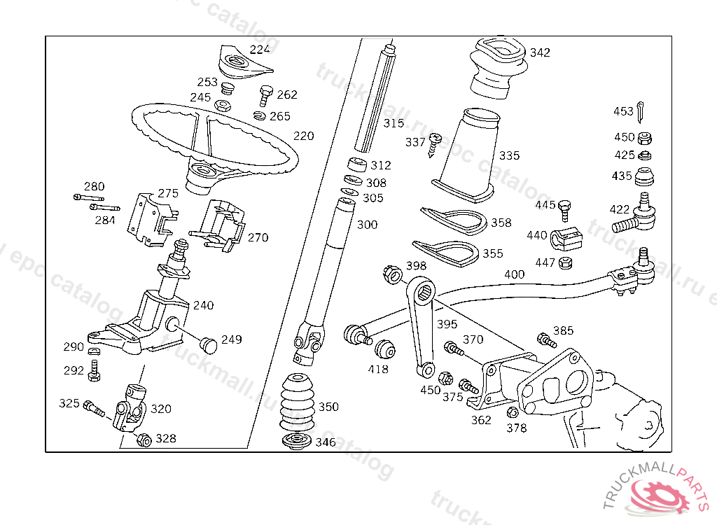 STEERING SHAFTLEMFOERDER, USED WITH SHORT MERCEDES-BENZ CAB