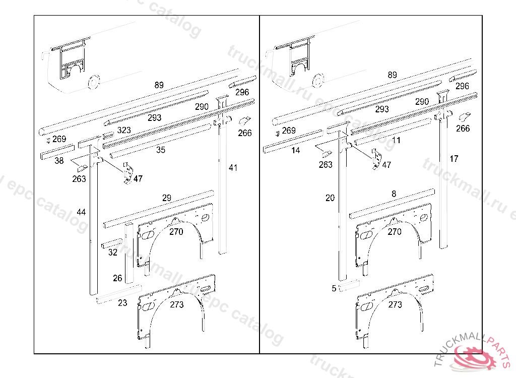RAIL RIGHT 2328 MM, TO BE ADAPTED DURING ASSEMBLY