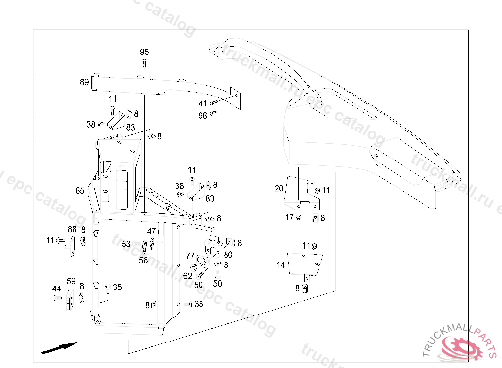 SCREW BRACKET TO CAB REAR PANEL M 8X20