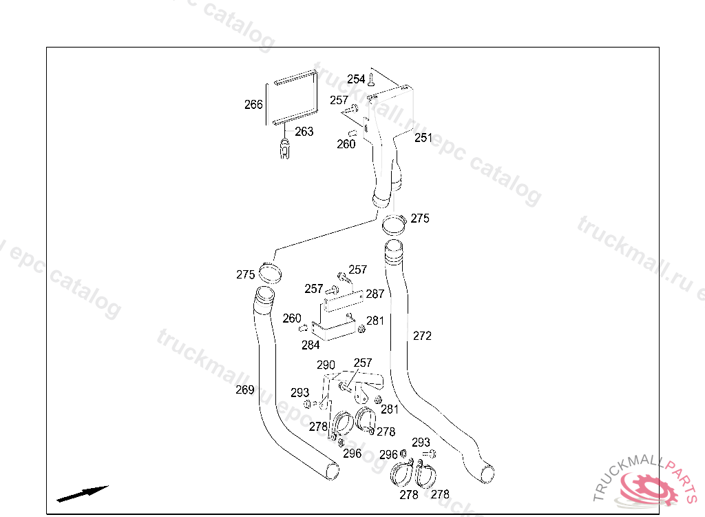 CLAMP COOLING WATER PIPE TO ENGINE MOUNTING, FRONT LEFT