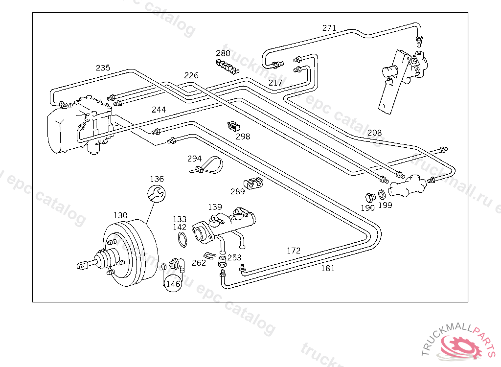 LINE FROM MASTER CYLINDER TO FRONT LEFT BRAKE HOSE, 000 193701 003 097469 086 006508 093 007717 102,103 209243 183 013349 190 020074 193 000014 200 006559 283 001514 INAPPLICABLE TO ANTI-LOCK BRAKING SYSTEM (ABS)
