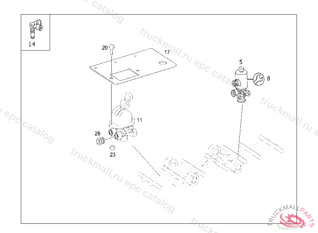 VALVE PARKING BRAKE WITH EMERGENCY RELEASE DEVICE, LESS TRAILER CONTROL KNORR, 14.08