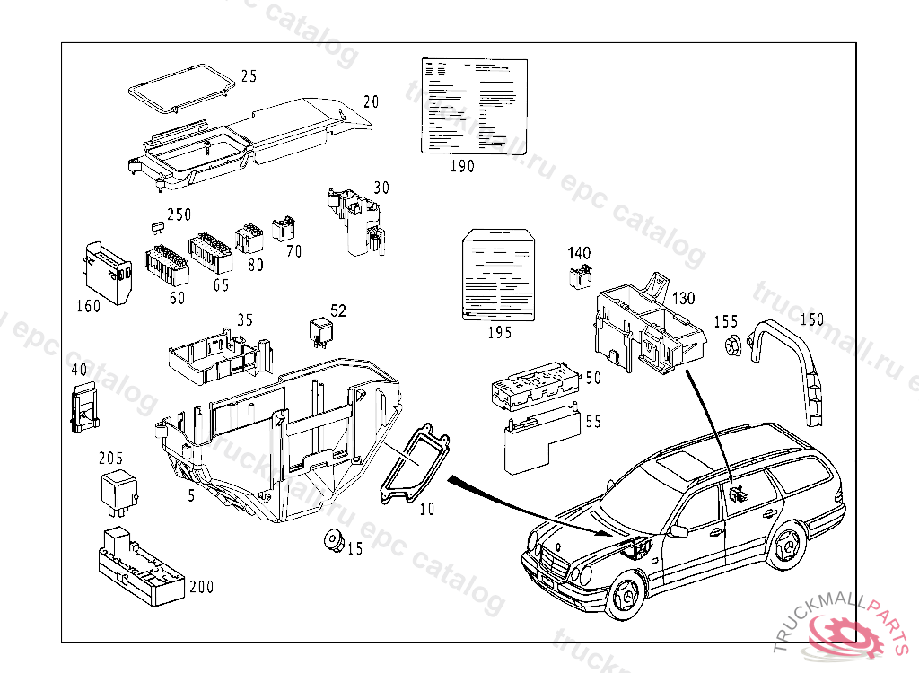 FUSE BOX CENTRAL ELECTRICAL SYSTEM SAM, A 519674 F 619721 EXCEPT CODE 807 ALSO INSTALLED IN VEHICLE TO A 519673, F 619720 WITH CODE 808