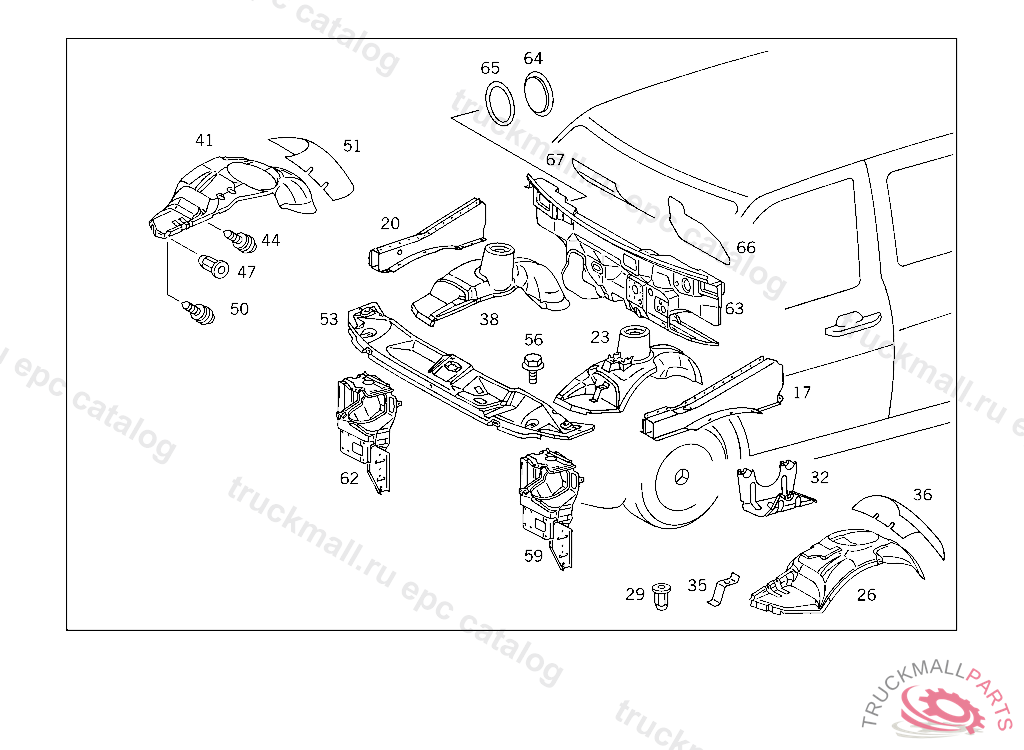 WHEELHOUSE , FIRST EXHAUST STOCK OF OLD PARTS UP TO IDENT NO. 149091, Replaced By: A6386101374