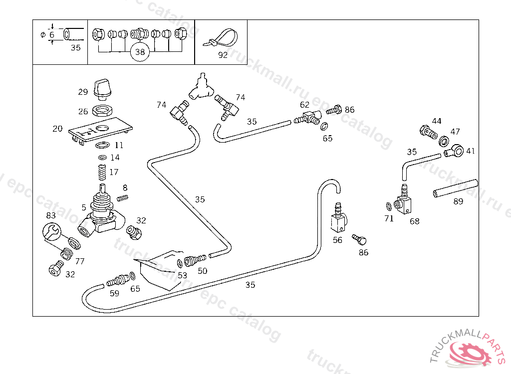 SCREW DELIVERY AND SUCTION LINES TO ENGINE, FRONT M 6X35