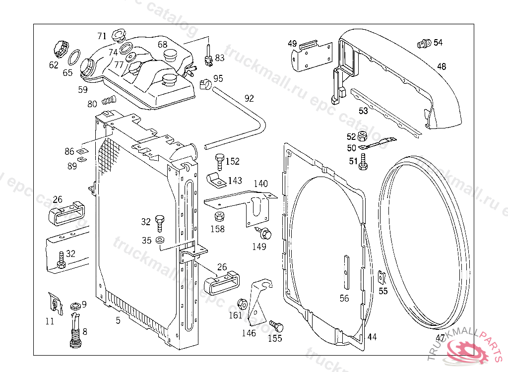 RADIATOR , FIRST EXHAUST STOCK OF OLD PARTS UP TO IDENT NO. 5 752618, Replaced By: A6525012501