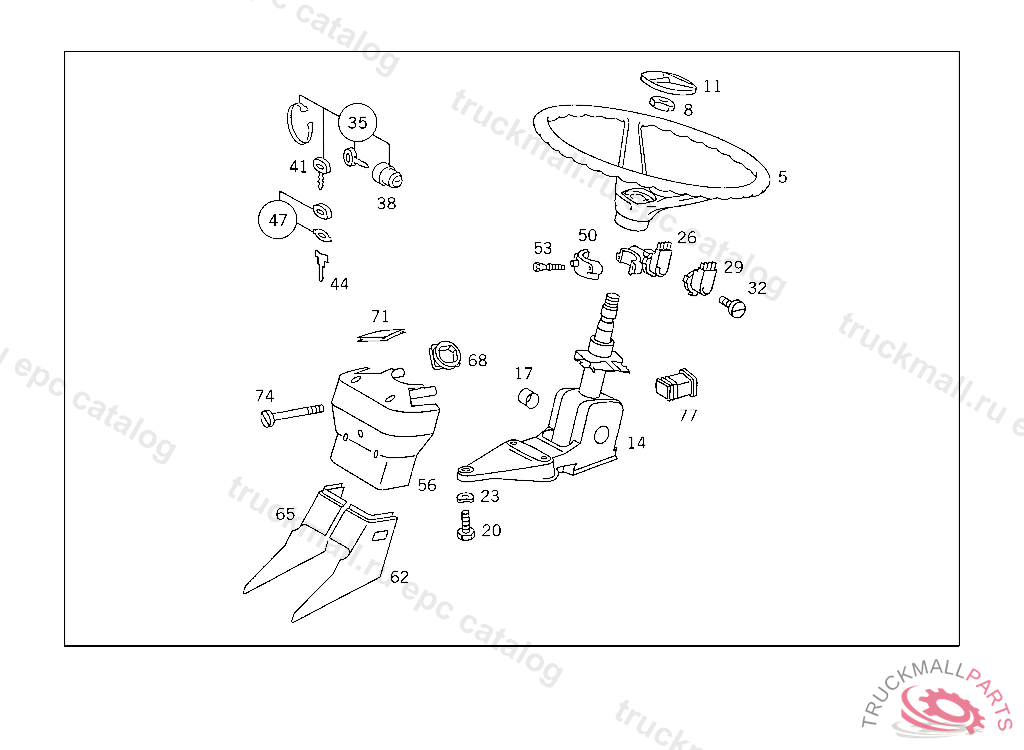 STEERING COLUMN BRACKET , USED WITH SHORT MERCEDES-BENZ CAB