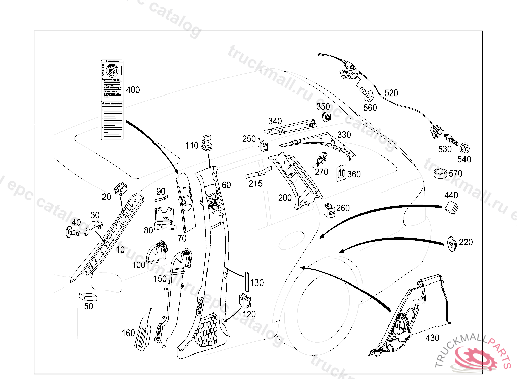 PANELING C-PILLAR BOTTOM, LEFT BETWEEN REAR BACKREST AND WHEELHOUSE