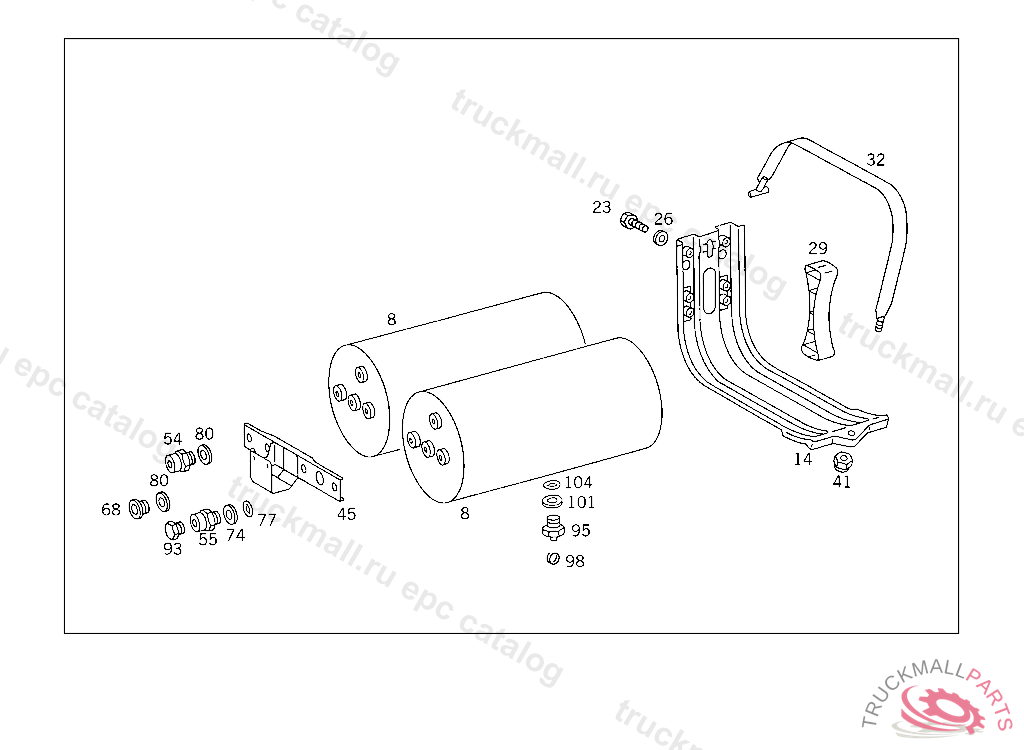 RESERVOIR COMPRESSED AIR 30 L, TO VOSS 232,5 9363665 812731 FOR VEHICLES WITH VOSS 230 CONNECTOR: ADD. MOUNT FITTING "A 004 997 82 72" WITH O-RING "A 000 987 04 46" AND THRUST RING "A 000 997 02 03" TO AIR RESERVOIR