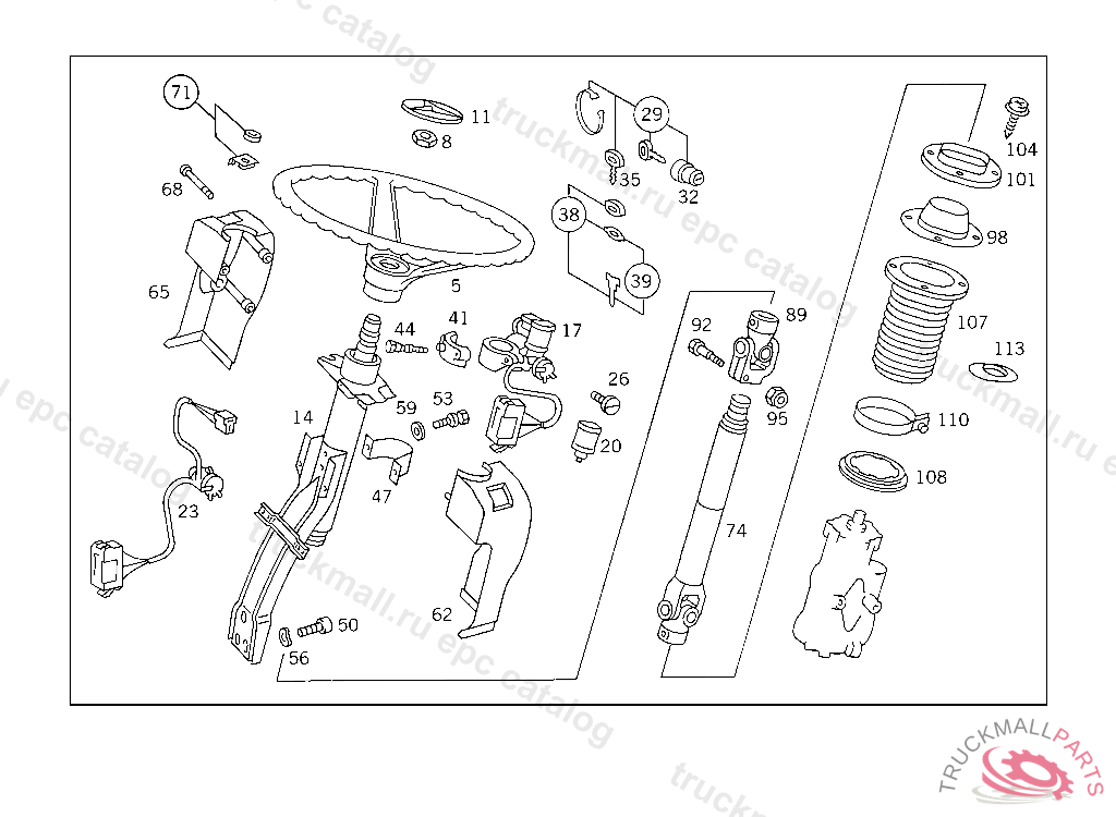 BEARING STEERING SHAFT, HOLE SPACING: 90/110 MM, TO BE ADAPTED DURING ASSEMBLY