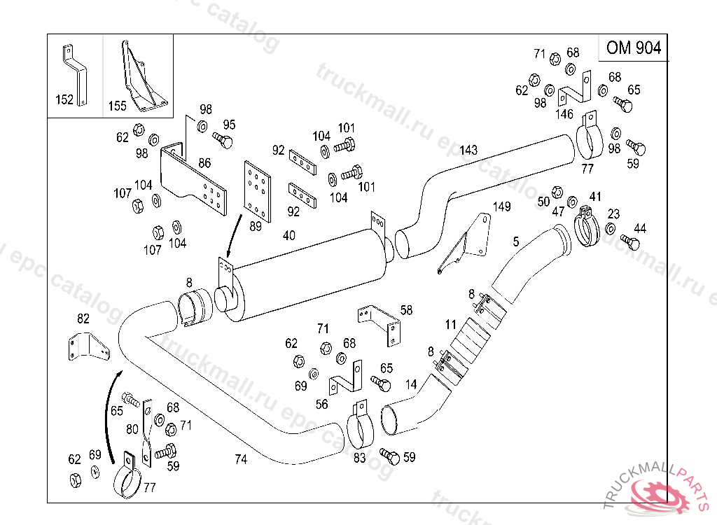 EXHAUST MUFFLER RIGHT OM 904 LA