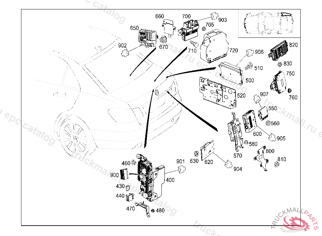 BRACKET CONTROL UNIT IN TRUNK, FIRST EXHAUST STOCK OF OLD PARTS UP TO IDENT NO. A 62094720120228, Replaced By: A2126400351