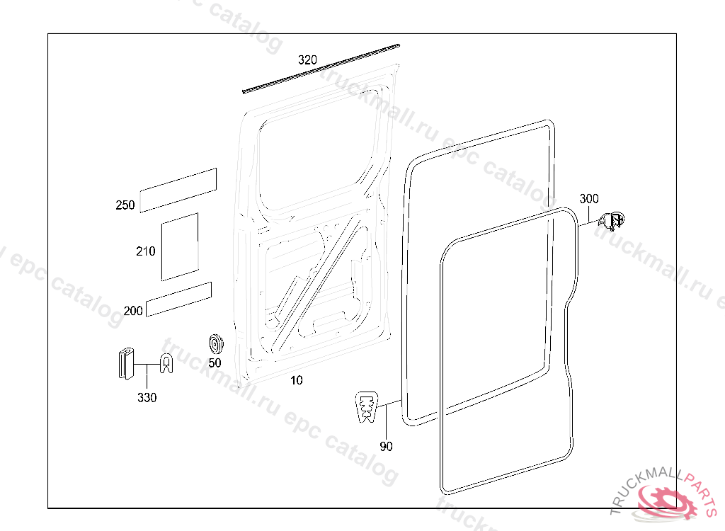 DOOR SHELL WITH WINDOW,RIGHT, S 50388220100906 E 05682820110729, Replaced By: A9067307005, +002A1239900522