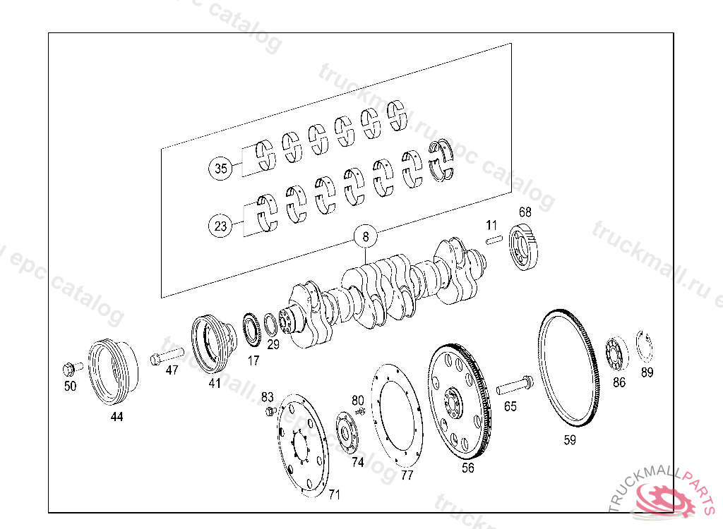 CRANKSHAFT BEARING MAIN BEARING PARTS KIT,FITTING SIZE 0.25, FIRST EXHAUST STOCK OF OLD PARTS UP TO ENGINE 583433, Replaced By: A9260300240