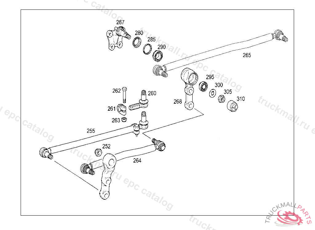 DRAG LINK FROM PITMAN ARM TO INTERMEDIATE LEVER I TRW, REPAIR IMPOSSIBLE, Replaced By: A0034603105