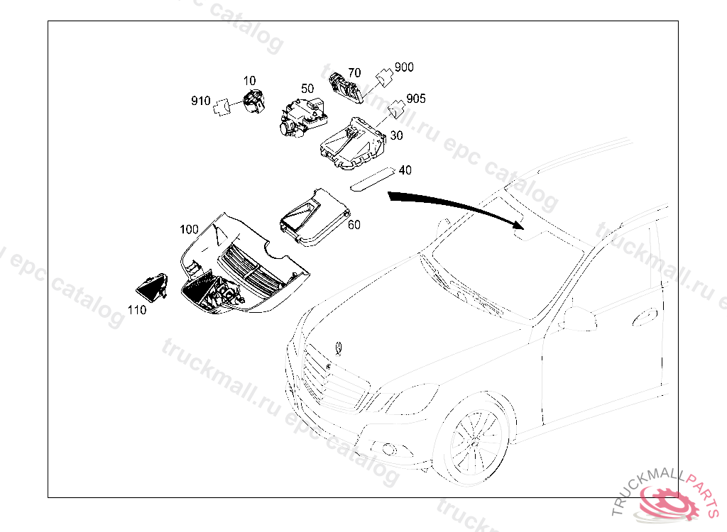 MULTI-PURPOSE CAMERA WINDSHIELD TOP, FIRST EXHAUST STOCK OF OLD PARTS UP TO IDENT NO. A 20130606 L 03634820130630 V 00262220130630 PART MUST BE CHECKED AFTER INSTALLATION FOR CURRENT FLASHWARE, Replaced By: A0009009504