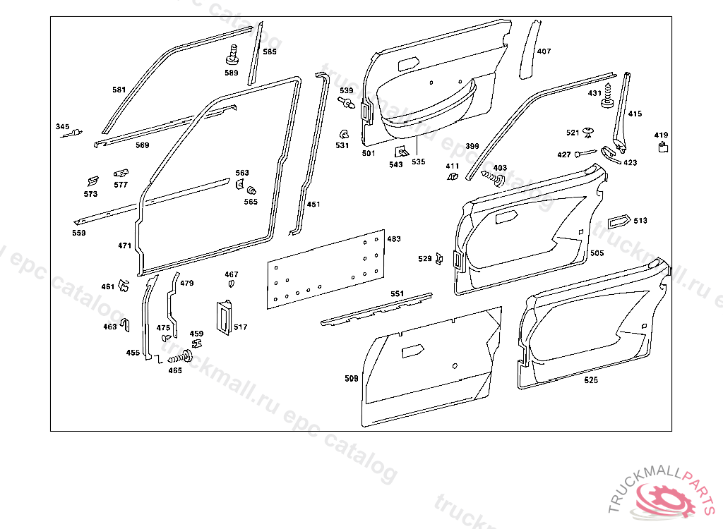 PANELLING RIGHT FRONT DOOR,REAR, BLACK NO.9007 CODE 001,061,101,161,201,261,461,901,961,BLUE NO.5020 CODE 062,162,262,462,962,BLUE NO.5045 CODE 002,102,202,902 MAHOGANY NO.8100 CODE 063,163,263,463,963 BEIGE NO.8103 CODE 064,164,264,464,964 PARCHMENT NO.8115 CODE 065,165,265,465,965, PARCHMENT NO.8263 CODE 005,105,205,905 OLIVE-GREEN NO.6028 CODE 166,266,466,966,BAMBOO NO.8102 CODE 167,267,467,BAMBOO NO. 8262 CODE 004,104,204,904,RED NO.3030 CODE168,268,468 TOBACCO NO.8261 CODE 003,103,203,903,MOSS NO.6070 CODE 006,106,206,906