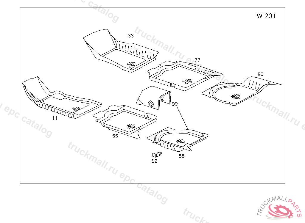 LINING FRONT FLOOR,LEFT, 201 A 450983 201 F 513803 124 A 777516 124 F 078642 A 500048 LL F 628344 -RL F 655351