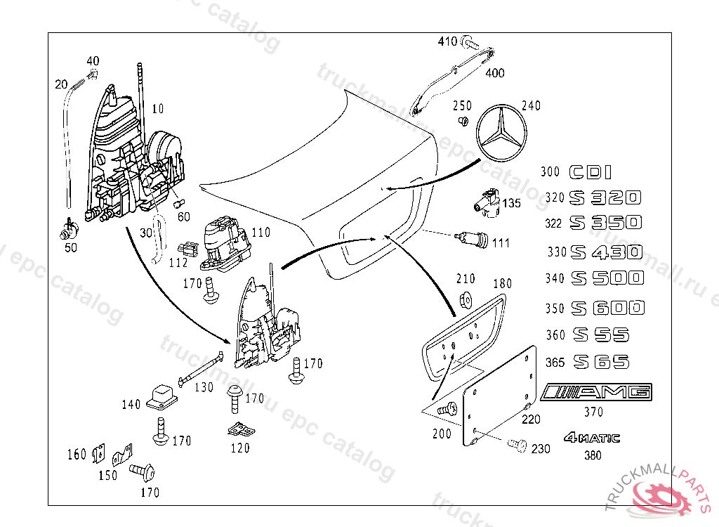 CATCH RIGHT, WITH TRUNK LID AUXILIARY LOCK, Replaced By: A2207501284
