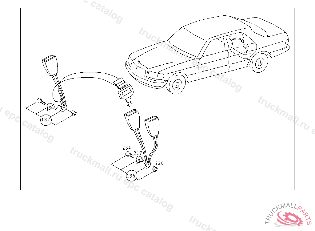 FASTENER DOUBLE, USED FOR REAR SEAT SAFETY BELTS,IN CENTER AND OUTSIDE LEFT, 123 A 000215 F 000026107 A 000109 126 A 001537