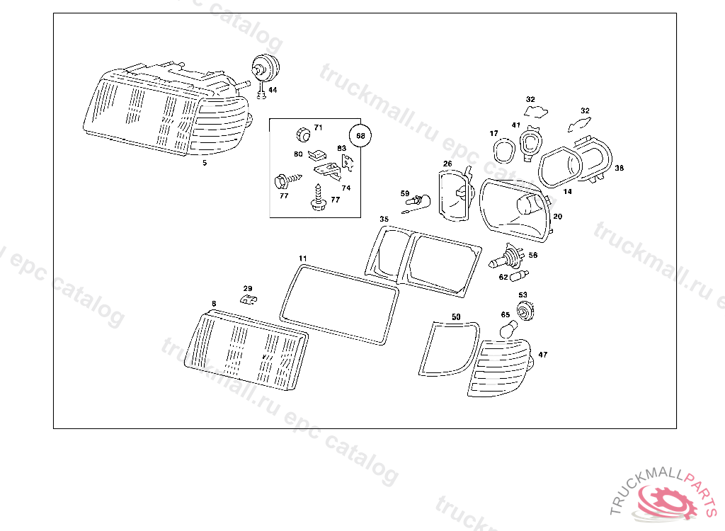 LIGHTING UNIT , FIRST EXHAUST STOCK OF OLD PARTS UP TO IDENT NO. 126.A 007580, Replaced By: A1268209061