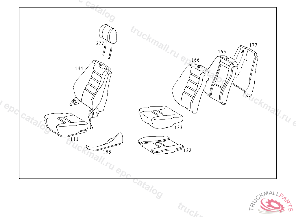 PANELLING RIGHT SEAT CUSHION, NO.7156I NO.5089I NO.8434I NO.8432I NO.8433I NO.6119 AI NO.3120I NO.7155I I NO.6133 BI