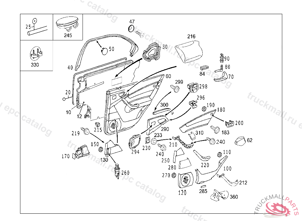PANELING RIGHT REAR DOOR, USED WITH FABRIC TRIM, Replaced By: A2207302495