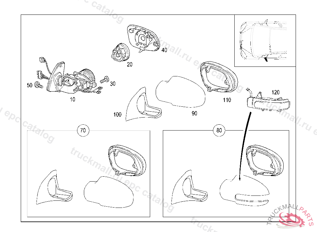 MIRROR BOWL PARTS KIT, WITHOUT TURN SIGNAL IND. CUTOUT