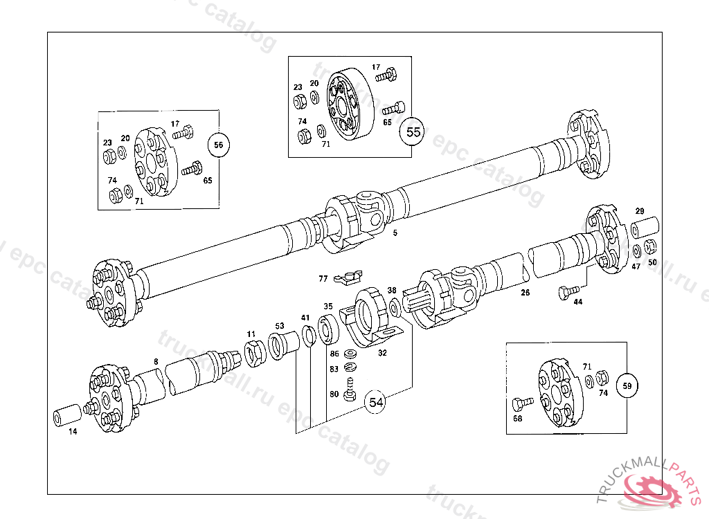 PROPELLER SHAFT REAR 80 MM LOCHKREIS