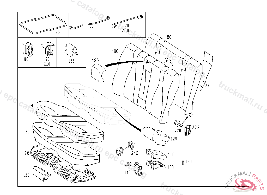 CLAMP LONGITUDINAL STAPLE UPHOLSTERY, OUT. LEFT/RIGHT, RIGHT SEAT, A 37260220020901803