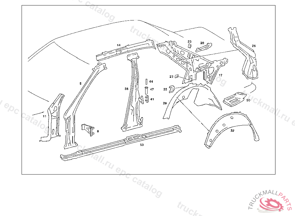 WHEELHOUSE , FIRST EXHAUST STOCK OF OLD PARTS UP TO IDENT NO. A 497515 F 628285, Replaced By: A2016371076