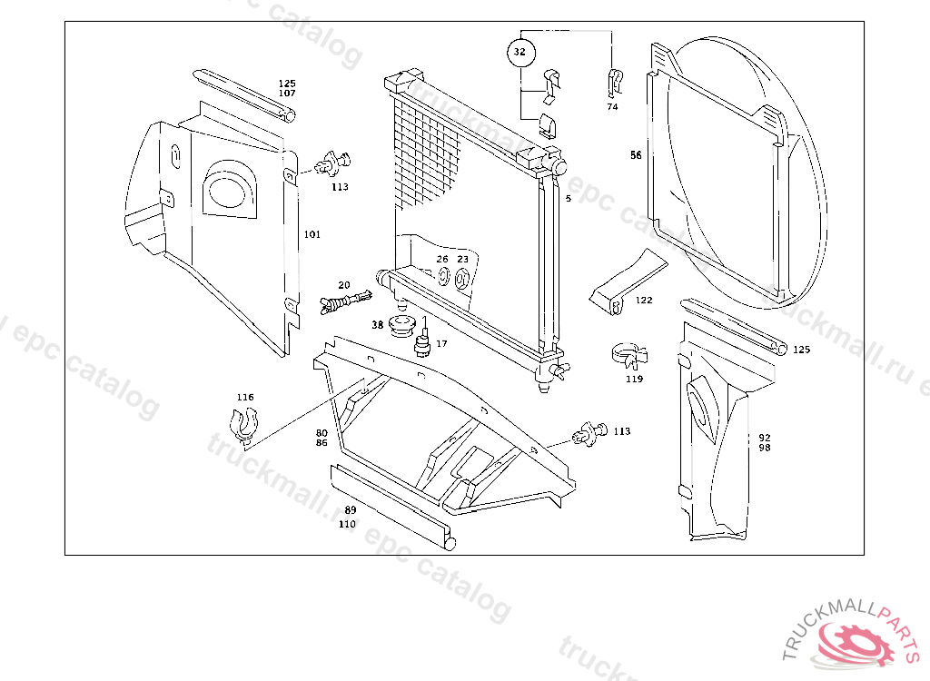 RADIATOR COVERING , FIRST EXHAUST STOCK OF OLD PARTS UP TO IDENT NO.A 000145, Replaced By: A2015051288, +001A2015050986