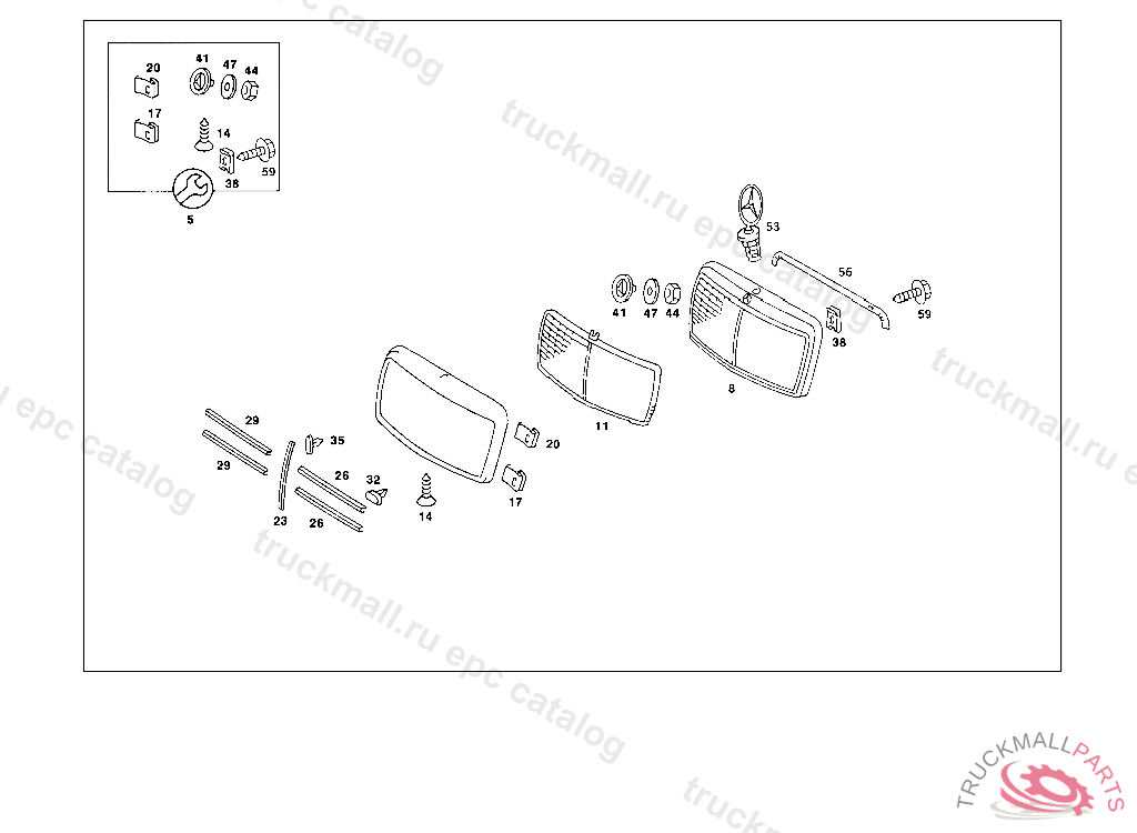 RADIATOR GRILLE SHELL , EXHAUST STOCK OF OLD PART NUMBERS FIRST UP TO CHASSIS F 235247, Replaced By: A2018800583