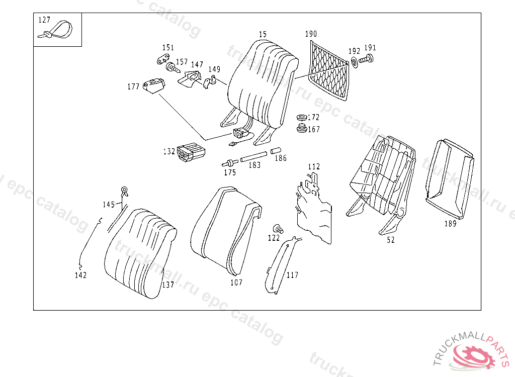 BACKREST RIGHT SEAT, NO.9045I NO.5070I NO.8310I NO.8320I NO.8411I NO.6093 AI NO.3111I NO.7095 CI I NO.6121 B I NO.7188 DI