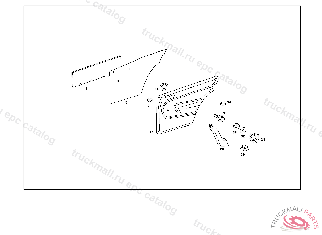 PANELLING LEFT REAR DOOR,USED WITH VELOURS TRIM,A 500238, F 628285NO.7081I NO.5073I NO.8313I NO.8323I NO.8414I NO.6124I NO.3114I NO.7147I I