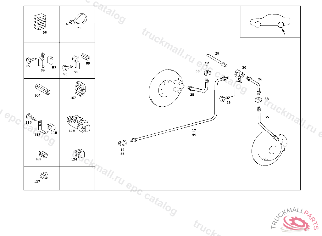 DAMPING STRIP BRAKE LINE TO FIRE WALL, 000 130186 003 066451 007 053318 083 002304 086 001762 093 001874 102,103 113215 105 135079 183 004049 190 005029