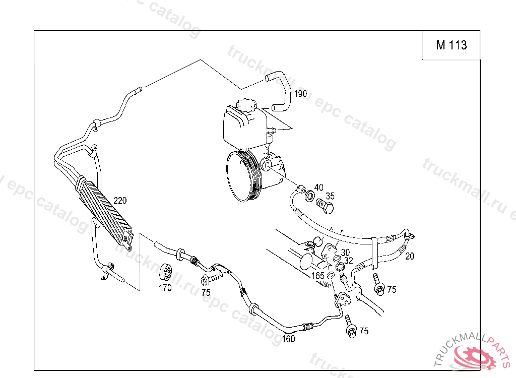 SUPPORT RING HIGH PRESSURE LINE TO STEERING, A 83219320050630 E 02000020070101