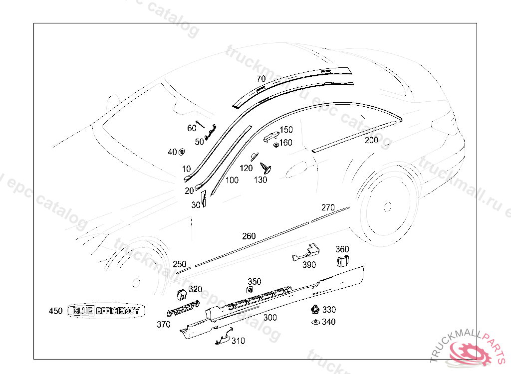 PANELING RIGHT SIDE MEMBER, TO BE PAINTED PRIOR TO INSTALLATION FOR VEHICLES UP TO F 016806 18/08/09 MOUNTING RAIL A 207 698 01 27 MUST ALSO BE ORDERED 9999QFT207L9000 COLORLESS