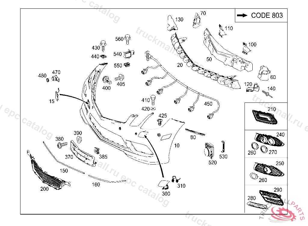 COVER BUMPER AREA RIGHT BOTTOM, FIRST EXHAUST STOCK OF OLD PARTS UP TO IDENT NO. F 15332020111130, Replaced By: A2078801224