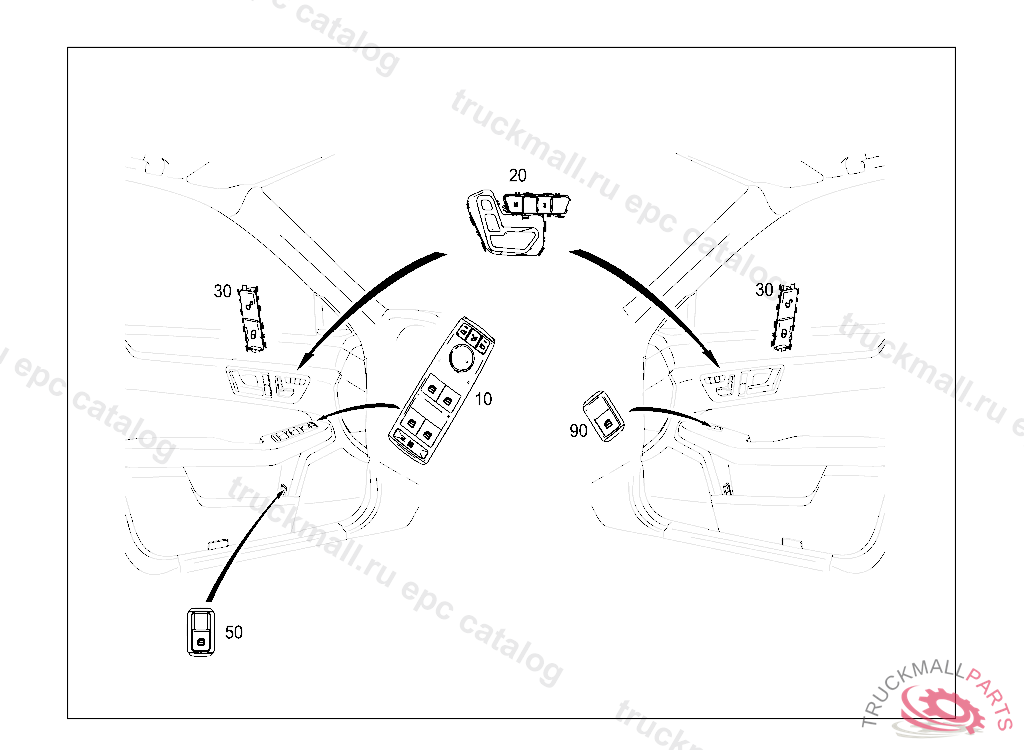 PUSH-BUTTON SWITCH FOR CO-DRIVERS DOOR, 9107QFT204A1030 MIDSOFT BLACK, Replaced By: A2129059600