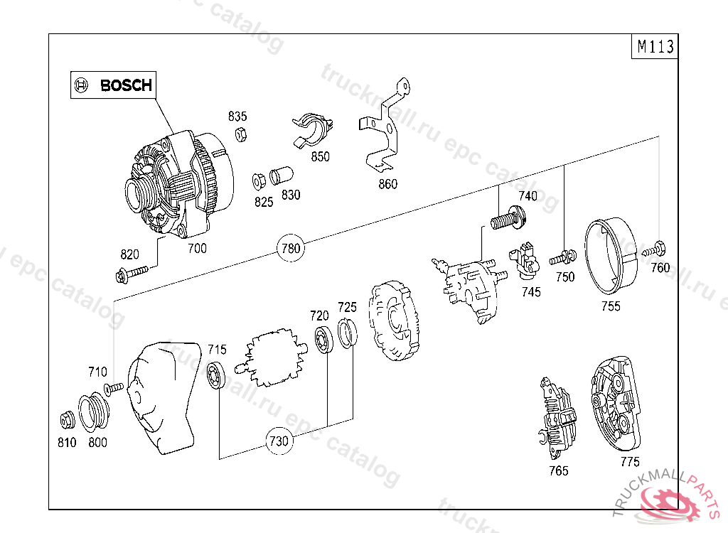 ALTERNATOR14V/150A BOSCH, A 01472120010630801 FIRST EXHAUST STOCK OF OLD PARTS UP TO IDENT NO. A 04704120050620 PART IS ONLY OR ALSO SUPPLIED AS RECONDITIONED PART, Replaced By: A0131548202