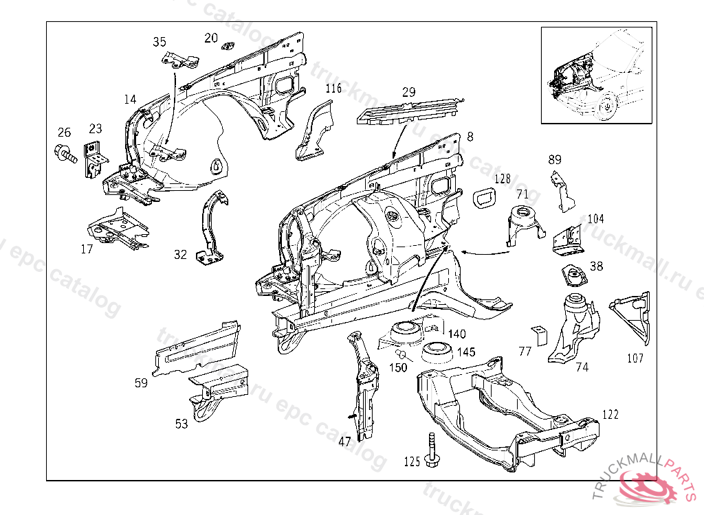 WHEELHOUSE , FIRST EXHAUST STOCK OF OLD PARTS UP TO IDENT NO.A 514205 / X 004008, Replaced By: A2106204261