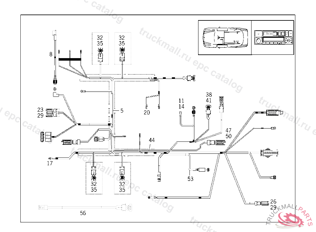 CABLE HARNESS RADIO SOUND SYSTEM,WITH AUTO PILOT SYSTEM, A 394036 X 004166 EXCEPT CODE 807 ALSO INSTALLED IN VEHICLE TO A 394035 / X 004165 WITH CODE 808