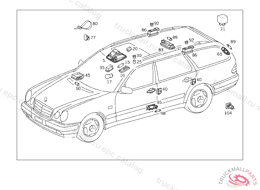 INTERIOR LAMP FRONT ROOF RAIL,LESS SLIDING ROOF, IMPORTANT: FOLLOWING INSTALLATION IN THE VEHICLE,CONTROL UNIT SHOULD BE CODED BY MEANS OF HAND-HELD TESTER ATTENTION!!! SPARE PART MUST BE CODED WITH HAND-HELD TESTER AFTER INSTALLATION IN VEHICLE! UP TO END OF MODEL YEAR 2000 NO.7D43 INO.7D43 INO.7D43 INO.8G69 INO.7D43 INO.7D43 INO.7D43 INO.7D43 I