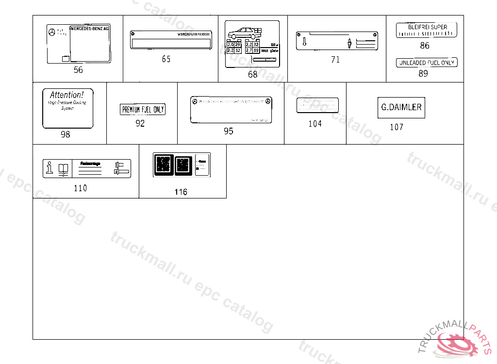 TYPE PLATE B-PILLAR DAIMLER-BENZ, TO BE ORDERED ONLY ON COMMISION AND INDICATING ALSO ALL THE VEHICLE DATA REQUIREDA 356775 THEFT-RELEVANT PART