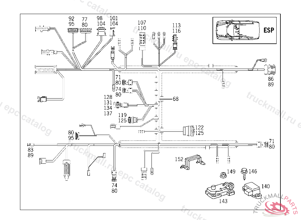 PLUG ENGINE CABLE HARNESS PLUG-CONNECTION TO FRAME MOUNTED CABLE HARNESS, A 698507 X 012425 EXCEPT CODE 809 ALSO INSTALLED IN VEHICLE FROM A 698508, X 012426 WITH CODE 808 EXCEPT A 654636, A 704016